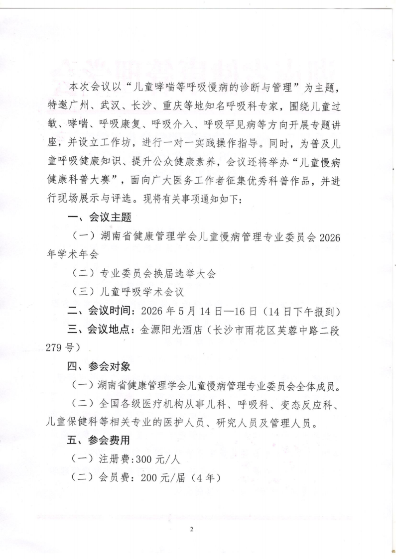 关于召开“湖南省健康管理学会儿童慢病管理专业委员会2026年学术年会暨儿童呼吸学术会议”的通知
