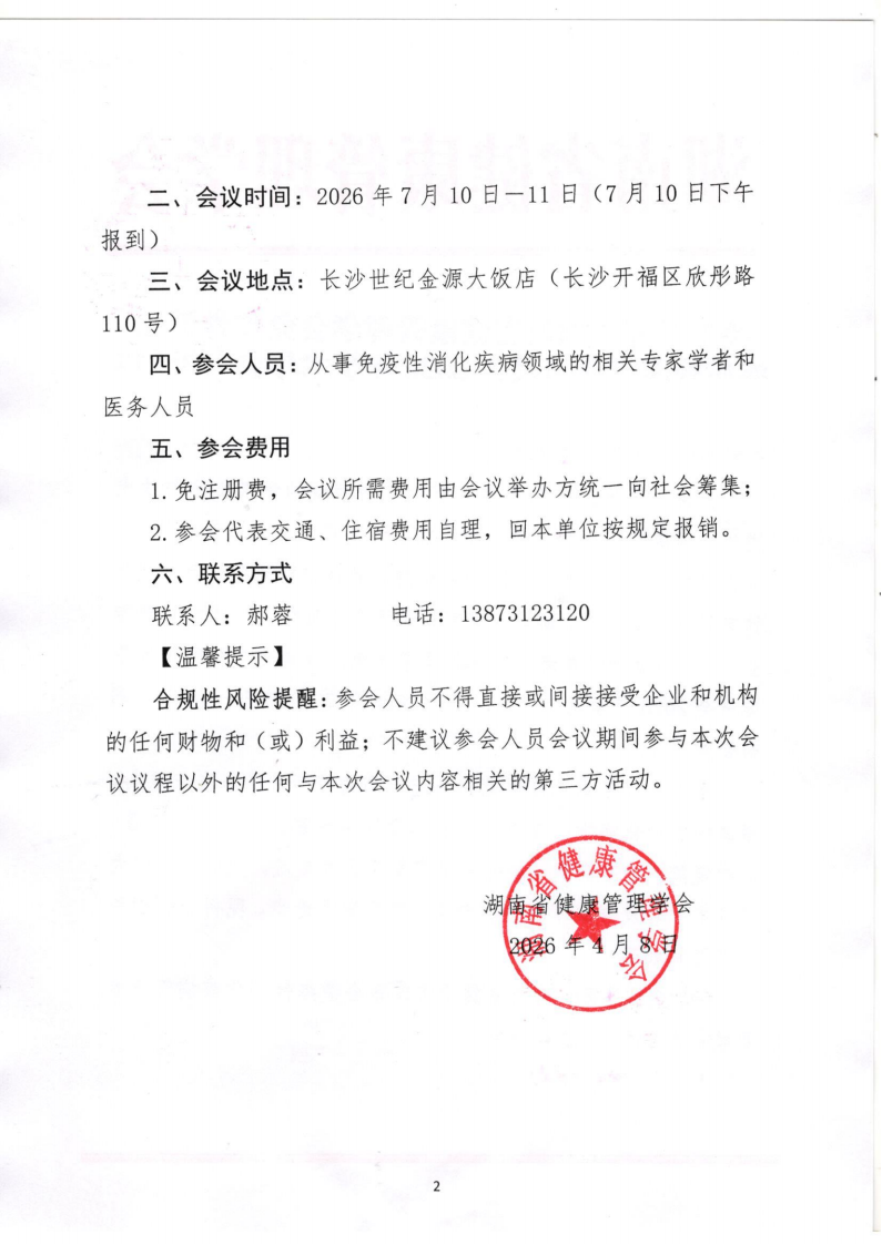 关于召开“湖南省健康管理学会免疫性消化疾病管理专业委员会2026年学术年会”的通知